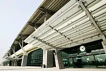 La estación de Taoyuan no solo sirve a los pasajeros que llegan o salen sino también a los viajeros que entran y salen del Aeropuerto Internacional de Taoyuan de Taiwán. La estación ocupa 20 hectáreas. Está constituida por tres edificios: la estación, el centro de operaciones en el lado noreste y la torre de estacionamiento en el lado suroeste. El tamaño de la estación es más pequeño que los otros dos edificios, pero es el punto focal, ya que se sitúa en el centro de la localidad y presenta la mayor parte de los servicios y funciones. Grandes ventanales y aleros de metal se extienden horizontalmente, la estación está iluminada y es transparente. La iluminación fue diseñada especialmente, el vidrio templado claro, el vidrio aislante y el sistema de vigas hacen hincapié en las funciones de espacio y da un aspecto brillante al edificio. El vetíbulo de 6 metros de altura en la planta baja se conecta a las escaléras eléctricas que suben desde la entrada y los andenes construidos bajo tierra.