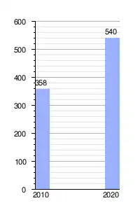 Gráfica de evolución demográfica de Tres Puentes entre 2010 y 2020 |