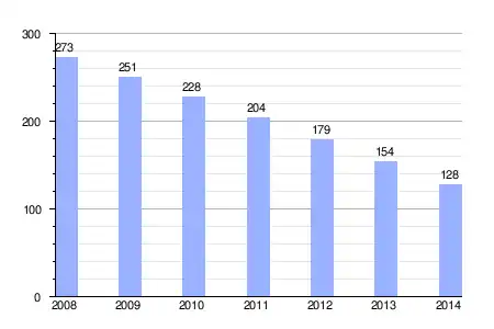 Gráfica de evolución de la deuda viva del ayuntamiento entre 2008 y 2014 |
