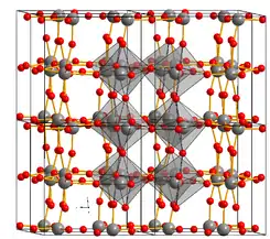 La estructura cristalina de trióxido de wolframio depende de la temperatura. A temperaturas superiores a 740 °C tiene una estructura tetragonal de 330 a 740 °C es ortorrómbica, mientras que 17 a 300 °C es monoclínica. Se le supone una estructura triclina 17 a -50 °C. Es evidente que la estructura más común de trióxido de tungsteno es el uno con monoclínico grupo espacial : P21/ n[6]