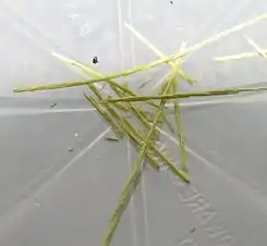 El óxido de wolframio (VI), también conocido como trióxido de wolframio o anhídrido wolfrámico, WO3, es un compuesto químico del oxígeno con el metal de transición wolframio. Se obtiene como producto intermedio en la recuperación de wolframio a partir de sus menas.[4] Los minerales del wolframio son tratados con álcalis para producir WO3. La reacción con carbono o hidrógeno gaseoso reduce el trióxido de wolframio a metal puro.