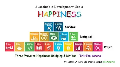 Tri Hita Karana es una filosofía tradicional de vida en la isla de Bali, Indonesia. Tri Hita Karana proviene de la palabra 'Tri' que significa "tres", 'Hita' que significa "felicidad" y 'Karana' que significa "causa". Su traducción literal es aproximadamente la de las 'tres causas para la creación de la felicidad', 'tres causas del bienestar' o 'tres razones para la prosperidad'.[1]