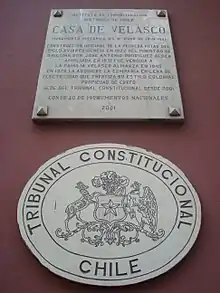 - Resolver sobre las inhabilidades que afecten a una persona para ser designada ministro de Estado, permanecer en dicho cargo o desempeñar simultáneamente otras funciones. También se pronunciará sobre las inhabilidades, incompatibilidades y causas de cese en el cargo de los parlamentarios.Sello del Tribunal Constitucional de la sede provisoria en la Casa de Velasco, que fuera su sede entre 2000 y 2012.