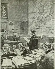 Desarrollo de una sesión en un Tribunal de Presas de Reino Unido durante la Primera Guerra Mundial.