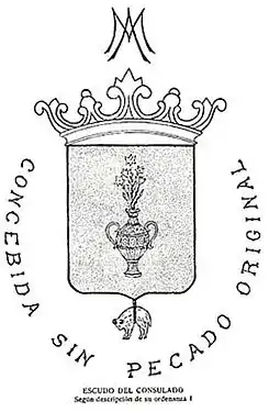 ![]() Escudo del Tribunal del Consulado de Lima concedido por Felipe IV | ||