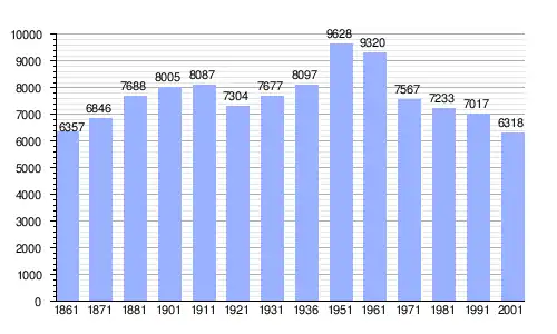 Gráfica de evolución demográfica de Tricarico entre 1861 y 2001 |