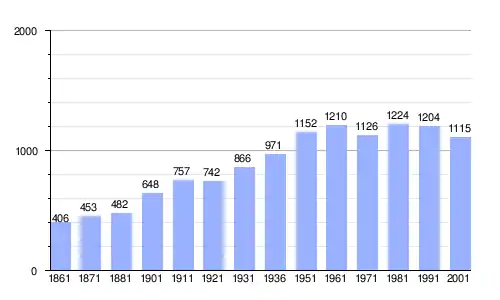 Gráfica de evolución demográfica de Triei entre 1861 y 2001 |
