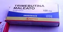 Trimebutina es un fármaco de tipo alcaloide sintético anticolinérgico y procinético usado como medicamento analgésico y antiespasmódico para tratar principalmente trastornos gástricos e intestinales.[1]