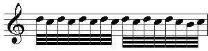 - Trino con resolución: es aquel que acaba con un grupo de notas entre las que hay alguna que no es la nota principal ni la auxiliar. Al igual que en el caso anterior, dichas notas se incluyen dentro del número de fusas necesarias para su ejecución. En el Barroco existía un único tipo de resolución consistente en que la última alternancia no fuese entre la nota principal y la superior sino entre la principal y la inferior. De esta manera, el final del trino se asemeja a otro tipo de ornamento musical denominado grupeto. En las partituras se representaba mediante una línea curva al final del signo de trino, siendo en este caso indiferente la forma de dicha línea puesto que sólo había una resolución posible. También podía señalarse mediante unas cuantas apoyaturas tras la nota que lleva la indicación de trino.