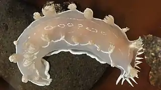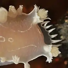 El notum, o manto, puede ser liso, o recubierto, parcial o totalmente, de papillae o tubérculos. El margen anterior de la cabeza se expande formando un velo oral, entero o lobulado, con tentáculos sensoriales, cuyo número oscila entre 4 y 40, según la especie. Los rinóforos, u órganos sensoriales, son palmeados y retráctiles. Las branquias están bien desarrolladas y dispuestas en hilera a cada lado del manto. Los dientes raquídeos son tricúspides; los dientes interiores laterales son ganchudos. Carecen de placas quitinosas en el estómago.[3]