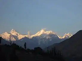 ![]() Trivor (extremo derecho), visto desde el valle de Hunza. | ||
