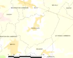 Troisvilles es una población y comuna francesa, en la región de Norte-Paso de Calais, departamento de Norte, en el distrito de Cambrai y cantón de Le Cateau-Cambrésis.