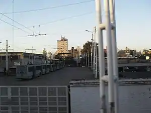 ![]() Trolebús de la línea B circulando por la Avenida Colón. | ||