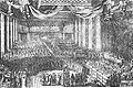 - El trono de plata en el salón nacional del castillo de las Tres Coronas en la coronación de Carlos XI en 1672.