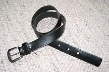 El mismo fenómeno se puede demostrar usando un cinturón de cuero con una hebilla, cuya punta sirve como indicador. El extremo opuesto a la hebilla se sujeta para que no pueda moverse. El cinturón se extiende sin torcerse y se mantiene horizontal mientras se gira la hebilla en el sentido de las agujas del reloj una vuelta completa (360°), como se aprecia al observar la punta. El cinturón aparecerá torcido, y ninguna maniobra de la hebilla que lo mantiene horizontal y apuntado en la misma dirección puede deshacer el giro. Obviamente, un giro de 360° en el sentido contrario a las agujas del reloj desharía el giro. El elemento sorpresa del truco es que un segundo giro de 360° también en el sentido de las agujas del reloj, mientras aparentemente hace que el cinturón esté todavía más retorcido, permite que el cinturón regrese a su estado desenroscado al maniobrar la hebilla por debajo del extremo sujeto, mientras se mantiene siempre horizontal y apuntada en la misma dirección.[5]