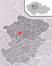Se encuentra ubicada al noroeste de la región y de Praga, a poca distancia al norte del río Berounka —un afluente izquierdo del río Moldava—, y cerca de la frontera con la región de Ústí nad Labem.[1]
