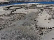 Entre la playa de Tufia y la cercana de Aguadulce se extiende un yacimiento arqueológico.[2] Está formado por un conjunto de cuevas que se abren en el lado sur, directamente sobre el mar y diversas construcciones, entre las que sobresalen estructuras habitacionales (casas de piedra) concentradas en dos núcleos separados. Desde 1973 está catalogado como Bien de Interés Cultural.[3]