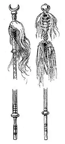 Un estandarte de pelo blanco era usada como un símbolo de tiempo de paz, mientras que el estandarte negro era para la guerra. El uso de la cola del caballo es simbólico pues los caballos son fundamentales para el sustento de los mongoles. Esto es similar al uso de pelos de cola de caballo para el norin juur, un instrumento de cuerda.