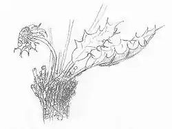 ![]() Tugarinovia mongolica, illustración esquemática con tronco, hojas y flor. | ||