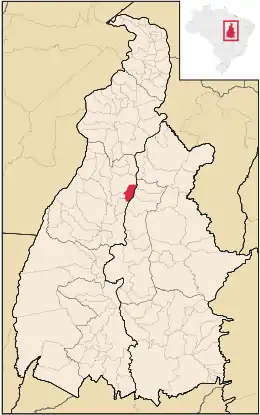 Se localiza a una latitud 8º58'22" sur y a una longitud 48º11'16" oeste, estando a una altitud de 202 metros. Su población estimada en 2004 era de 1.259 habitantes.