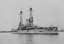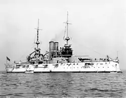 La siguiente operación significativa de la embarcación fue el crucero con la Gran Flota Blanca por todo el mundo, que empezó con una revista naval por el presidente Theodore Roosevelt, en Hampton Roads, Virginia.[2] El crucero fue concebido como una forma de demostrar el poderío militar de los Estados Unidos, particularmente hacia Japón. Las tensiones entre Estados Unidos y Japón habían comenzado a aumentar después de la victoria japonesa en la guerra ruso-japonesa, en 1905. La prensa de ambos países pedía la guerra, y Roosevelt esperaba utilizar la demostración de poderío naval para disuadir cualquier agresión japonesa.[4]