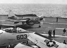 Un Fairey Gannet del 849 Naval Air Squadron de la Royal Navy en la cubierta del Forrestal en 1962.