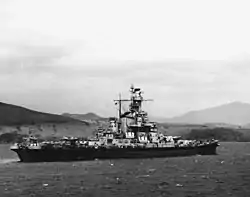 Entre julio y agosto de 1945, asignado a la Task Force 38.1, efectuó bombardeos contras las islas metropolitanas de Japón, y protegiendo a los portaaviones en sus ataques aéreos.[1] El 30 de agosto protegió el desembarco norteamericano en la Base Naval de Yokosuka, donde el 2 de septiembre tuvo lugar la ceremonia formal de la rendición japonesa. Posteriormente partió de vuelta a Estados Unidos adonde llegó el 29 de septiembre después de haber recorrido 234.888 millas, desde su botadora en Newport News y haber conseguido 9 estrellas de combate por sus servicios durante la guerra.[2]