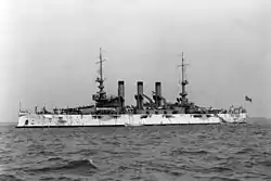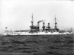Estaba armado con una batería principal de cuatro cañones calibre 305 mm/45 serie 5 en dos torretas dobles en la línea central, una en la proa y otra en la popa. La batería secundaria consistía en ocho cañones calibre 203 mm/45, y doce cañones calibre 178 mm/45. Los cañones de 203 mm estaban montados en cuatro torretas dobles en la mitad de la embarcación y los de 178 mm estaban colocados en casamatas en el casco. Contaba con veinte cañones calibre 76 mm/50 para la defensa a corta distancia contra buques torpederos, también montados en casamatas a lo largo del casco, y con doce cañones de 3 libras. Contaba también con cuatro cañones de 1 libra. Como estándar de los buques capitales de ese periodo, contaba con cuatro tubos lanzatorpedos de 533 mm en lanzadores sumergidos a los costados del casco.[2]