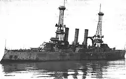 ![]() USS New Jersey (BB-16) con esquema de camuflaje, 1918 | ||