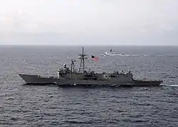 ![]() La fragata en navegación junto al cúter USCGC Forward (WMEC-911) | ||