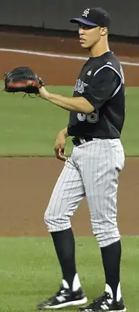 ![]() Ubaldo mientras jugaba para los Rockies de Colorado | |||