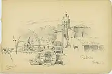 Iglesia de Nuestra Señora de la Virgen de la Caridad, en el barrio de La Virgen. Dibujo de Mariano Pedrero.