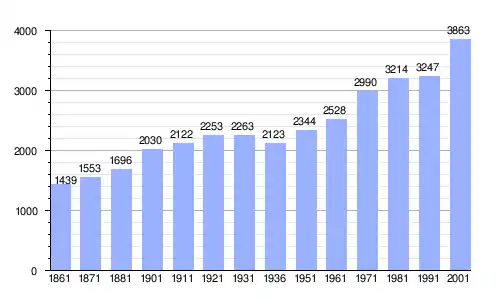 Gráfica de evolución demográfica de Uggiate-Trevano entre 1861 y 2001 |