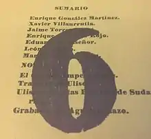 En el sexto y último número participaron Enrique Gonzales Martínez, Xavier Villaurrutia, Jaime Torres Bodet con grabados de Agustín Lazo, publicado en febrero de 1928.