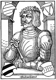 Ulrich von Hutten (castillo de Steckelberg, cerca de Fulda; 21 de abril de 1488-isla de Ufenau, en el lago de Zúrich; 29 de agosto de 1523) fue un caballero del Imperio (Reichsritter), humanista alemán y uno de los más grandes propagandistas de la Reforma en el Sacro Imperio. Fue, al igual que Martín Lutero y Conrad Celtis, una figura del primer nacionalismo alemán.[1]