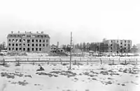 Construcción de los barracones del regimiento de Västerbotten en 1907.