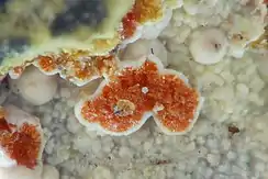 Suele encontrarse asociado a otros minerales como: uraninita, ilsemannita, jordisita, iriginita, schoepita, uranofana, rutherfordina, calcurmolita, fluorita, pirita, yeso o cuarzo. calcurmolite, fluorite, pyrite, gypsum, quartz.