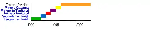 El club fue fundado en 1989 por un grupo de trabajadores de la empresa de autobuses de Badalona, TUBSAL (Transportes Urbanos de Badalona, S.A.L.), que jugaban a fútbol sala.[1][2] Empezó compitiendo en una liga de empresas con el nombre de FC Tubsal, hasta que la temporada 1990/91 comenzó a disputar competiciones oficiales, participando en Tercera Regional, la categoría más baja de la liga española en Cataluña. En 1992 el club cambió su nombre a Unió de l'Esport Badaloní.[2] A partir de ese momento, y con el presidente de Tubsal, Fermín Casquete, en el banquillo, el club vivió una progresión meteórica, encadenando cinco ascensos consecutivos que le llevaron de la categoría regional a nacional.[3][4]