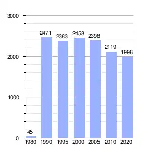 En 2020 registró una población de 1996 personas, lo que corresponde al 6.33 % de la población municipal.[12] De los cuales 957 son hombres y 1039 son mujeres.[12] Tiene 583 viviendas particulares habitadas.[12]