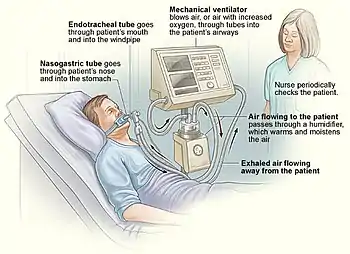 Un ventilador geriátrico es una máquina que proporciona ventilación mecánica moviendo el aire respirable hacia dentro y hacia fuera de los pulmones, para facilitar la respiración a un paciente geriátrico que es físicamente incapaz de respirar, o que respira insuficientemente.