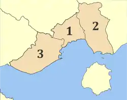 La unidad regional de Kavala se subdivide en 3 municipios (en paréntesis el número de referencia del mapa):[3]