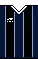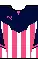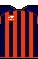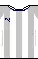 - Local: Camiseta blanca con pinstripes azul marino gradientes a partir del centro y detalles rojos, pantalón azul con detalles y medias rojas.