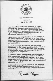 - «Academic Decathlon Championship Teams Honored by President». PR Newswire. 21 de abril de 1992.