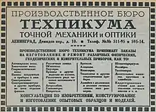 - 1920 - 1930 – Colegio de Mecánica de Precisión y Óptica de Petrogrado