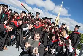 El presidente de la Federación Rusa, Vladimir Putin, felicitó al equipo de la Universidad ITMO por su sexta victoria en el campeonato de programación ACM ICPC en la sesión plenaria durante el segundo día del Foro Económico Internacional de San Petersburgo en mayo de 2015.