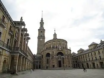 La iglesia es sin duda el edificio más espectacular del conjunto arquitectónico de la Universidad Laboral. Con una superficie de 38,40 m por 24 metros, es una de las iglesias de planta elíptica más grandes del mundo. Se aprecia cierta similitud, especialmente interior, con la iglesia de San Agustín de Madrid, del mismo autor.