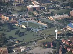 El campus contiene varios edificios que contribuyen a su distrito de Monumento Histórico Nacional: Virginia-Cleveland Hall (dormitorio femenino de primer año, así como el antiguo hogar de las dos cafeterías de la escuela), edificio Wigwam (hogar de oficinas administrativas), Academy Building (oficinas administrativas), Memorial Chapel (servicios religiosos) y la Mansión del Presidente.[22][23]