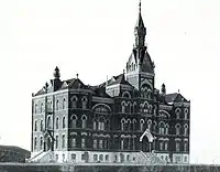 El Edificio Administrativo Original, con una sola punta superando los 49,7 metros de altura, fue construida durante la década de 1890 y concluida en 1899. Desafortunadamente, se redujo a escombros el 30 de marzo de 1909[6]a causa de un incendio. La causa del incendio, que se originó en la base del edificio, se desconoce, pero se toma como un problema eléctrico y no fue provocado.[7]