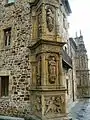 Fue levantada por Pierre Picart en torno a 1546. Se construyó primero la portada central con la entrada principal, que tiene gran similitud con la del Convento de las Dueñas de Salamanca. A ambos lados se añadieron sendos pilastrones esculpidos con figuras de bulto, relieves y columnillas, y prolongados con torrecillas, a inspiración del Colegio de Santa Cruz de Valladolid. Otros dos pilastrones de similar traza se sitúan en los esquinales de cada torre lateral, que son un piso más altas que el cuerpo principal. Las cuatro torrecillas así como los restantes seis vértices de las aguas de los tejados de los cubos laterales son rematadas por figuras de guerreros.