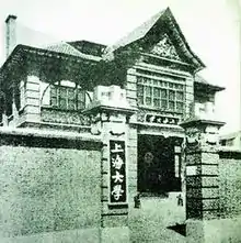 La Universidad de Shanghái se fundó en Qingyun Road, distrito de Jing'an, Shanghái en 1922 y fue el resultado de la cooperación entre el Kuomintang (Partido Nacionalista) y el Partido Comunista. Yu Youren, miembro notable del Kuomintang, fue el primer rector de la universidad. En ese momento, bajo el gobierno revolucionario dirigido por Sun Yat-sen, la Universidad de Shanghái era la mejor escuela en artes liberales, mientras que la Academia Militar de Whampoa era la academia de élite para entrenamiento militar. Sin embargo, la Universidad de Shanghái quedó dominada por facciones de izquierda simpatizantes del Partido Comunista de China. Como resultado, la Universidad de Shanghái se cerró en 1927 durante las purgas anticomunistas de Chiang Kai-shek (al comienzo de la Guerra Civil China). El antiguo campus fue destruido durante la Segunda Guerra Mundial.